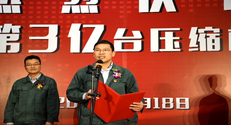 加西貝拉第3億臺冰箱壓縮機于2020年11月18日11時18分勝利誕生,慶祝儀式在公司三廠生產現場隆重舉行,長虹華意黨委書記、董事長、加西貝拉董事長楊秀彪,長虹華意總經理、加西貝拉黨委書記、總經理張勤建出席儀式并講話。
